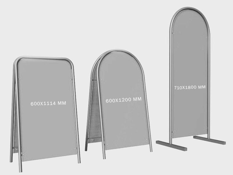 Мы готовы предложить изготовление металлокаркасов штендеров разной конструкции или размеров, со сменной информацией или комбинированные решения.
